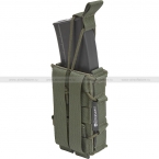 Магазин надежно удерживается на месте благодаря верхней резинке с удобным захватом. Подсумок крепится к снаряжению через систему MOLLE и занимает две ячейки по ширине.
