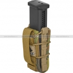 Подсумок под один пистолетный магазин с креплением на MOLLE. Пластиковый каркас и износостойкие нейлоновые стенки, стягиваемые воедино эластичным жгутом, прочно удерживают магазин внутри, практически исключая возможность его случайной утери. Подобная конструкция также позволяет настраивать объем подсумка под конкретный магазин в зависимости от его габаритов.