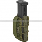 Пистолетный подсумок быстрого типа. Позволяет получать мгновенный доступ к размещенному снаряжению. Тканевые стенки и пластиковый каркас плотно удерживают магазин, при этом его установка и извлечение осуществляются одним четким движением. Жгут, опоясывающий подсумок, позволяет настраивать как жесткость удержания, так и внутренний объем под конкретную модель магазина.