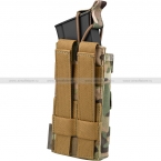 Подсумок для 1 магазина от автоматов серии АК или М4/М16. Благодаря тому, что магазин удерживается внутри за счет эластичной резинки, извлечение происходит практически бесшумно. Чтобы резинку было удобнее сдвигать сверху имеется "язычок". Крепление подсумка на снаряжении осуществляется за счет строп МОЛЛЕ на обратной стороне.