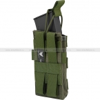 Оружейный подсумок под один магазин от автоматов серии АК или M. Магазин размещается внутри и сверху прижимается эластичной резинкой, длину которой можно настроить перевязав узелок. На лицевой стороне подсумка нашиты стропы MOLLE для масштабирования.