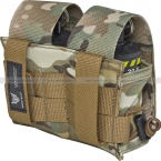 Сдвоенный подсумок под ручные гранаты, а также выстрелы от подствольного гранатомета. Каждое отделение опоясывается эластичным жгутом с фиксатором, а сверху закрывается клапаном на велкро-липучке, за счет чего в подсумок можно размещать практически все типы ручных гранат и надежно фиксировать их внутри.