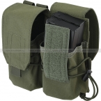Оружейный подсумок с двумя отделениями для размещения магазинов от автоматов М-серии и аналогов по размерам. Подсумок сшит из прочной, износостойкой ткани. За счет строп на обратной стороне закрепляется на любом MOLLE-совместимом снаряжении. Магазины внутри отделений фиксируются закрывающим клапаном и опоясывающей резинкой с фиксатором-утяжкой.