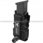 Пистолетный подсумок т.н. "быстрого" типа. За счет конструкции позволяется быстро устанавливать и извлекать магазин из отделения. Ослабляя и натягивая эластичный жгут, можно регулировать размер подсумка. Крепится на MOLLE.