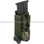 Пистолетный подсумок для размещения одного магазина от моделей пистолетов Glock, Beretta, ПМ, ПЯ Грач, Colt и других аналогичных по размеру. Фиксация магазина внутри осуществляется за счет тканевых стенок и пластикового каркаса, стягиваемых эластичным кордом (жгутом). Подсумок крепится на снаряжении на MOLLE, занимая одну ячейку.