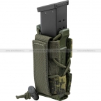 Качественный и надежный оружейный подсумок для размещения одного пистолетного магазина. Может также использоваться для размещения магазинов от пистолетов-пулеметов. Стенки изготовлены из износостойкого нейлона, каркас из прочного пластика. Плотность посадки магазина внутри подсумка можно регулировать за счет эластичной резинки, стягивающей стенки. Подсумок можно закрепить на любом снаряжении с интерфейсом MOLLE.