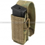 Прочный, надежный и функциональный подсумок с креплением на MOLLE. Отделение вмещает один магазин от пистолета. Плотность удержания магазина можно настраивать благодаря корду с фиксатором, который опоясывает отделение.