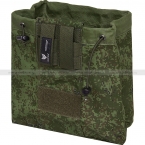 Вместительный подсумок под сброс пустых магазинов. Имеет достаточно большую и удобную горловину, объем которой настраивается утяжками с фиксатором. Объема подсумка достаточно для размещения до 6 магазинов серии АК. В транспортном положении подсумок можно сложить и зафиксировать велкро-липучкой, сделав его максимально компактным.