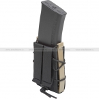 Оружейный подсумок для одного магазина серии АК, М4/AR15 или аналогичных по размерам моделей. Он сохраняет работоспособность при любых температурных условиях. Магазин надежно фиксируется внутри благодаря плотным тканевым стенкам и жесткой пластиковой рамке по бокам. Для объединения всей конструкции используется эластичный шнур, с помощью которого можно регулировать как объем отделения, так и степень плотности посадки магазина.