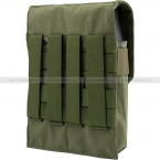 Оружейный подсумок с двумя отделениями для размещения магазинов серии АК. Каждое отделение вмещает по 2 магазина, разделяемые внутри несъемной перегородкой. Сверху отделения закрываются клапаном на липучке, который защищает содержимое от утери и атмосферных осадков.