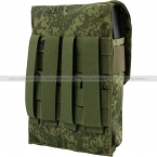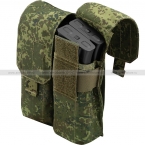 Двойной подсумок закрытого типа для размещения до 4х магазинов серии АК (по 2 в каждое отделение). Магазины надежно удерживаются внутри широкой резинкой, поэтому закрывающий клапан можно заправить внутрь, если необходимо обеспечить быстрый доступ к боекомплекту.