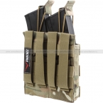 Подсумок открытого типа на два магазина АК и М-серии, а также похожие по габаритам. Конструкция подсумка состоит из двух отделений, каждое из которых вмещает по одному магазину. Магазин удерживается внутри с помощью эластичной резинки с "язычком", которая держит плотно, но не мешает быстрому извлечению. Нет клапанов, нет застёжек – только простой доступ.