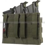Подсумок открытого типа на три магазина АК и М-серии, а также похожие по габаритам. Конструкция подсумка состоит из трёх отделений, каждое из которых вмещает по одному магазину. Магазин удерживается внутри с помощью эластичной резинки с "язычком", которая держит плотно, но не мешает быстрому извлечению. Нет клапанов, нет застёжек – только простой доступ.