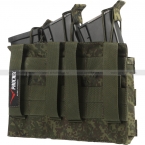 Подсумок открытого типа на три магазина АК и М-серии, а также похожие по габаритам. Конструкция подсумка состоит из трёх отделений, каждое из которых вмещает по одному магазину. Магазин удерживается внутри с помощью эластичной резинки с "язычком", которая держит плотно, но не мешает быстрому извлечению. Нет клапанов, нет застёжек – только простой доступ.