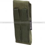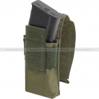 Оружейный подсумок с креплением MOLLE для одного магазина АК-серии. Подсумок фиксируется внутри закрывающим клапаном на липучке и широкой резинкой, опоясывающей подсумок. В нижней части есть люверс для отведения попавшей воды.