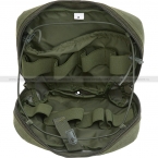 Вместительная медицинская напашная сумка, предназначенная для безопасного хранения и быстрого доступа к медицинским принадлежностям. Она крепится под передним клапаном бронежилета с помощью велкро-липучки. Сумка состоит из одного основного отделения, которое закрывается на молнию. Внутри отделения расположены карманы и эластичные ремешки для аккуратной организации медикаментов, перевязочных средств и других необходимых вещей. По бокам расположены фиксаторы, ограничивающие раскрытие сумки для удобства использования. При необходимости, данное изделие можно использовать и как стандартный утилитарный подсумок для различных целей.