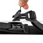 Ремень использует особую инновационную пряжку. Пряжка изготовлена из морозостойкого полимера, фиксируется на стальную пластину с магнитной направляющей. Пряжка выдерживает нагрузку на разрыв до 70 кг. Конструкция пряжки практически полностью исключает возможность случайного открытия.