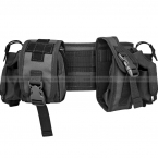 Тактический пояс на базе системы MOLLE с комплектом подсумков. На поясе в 2 ряда нашиты MOLLE-стропы, на которых в произвольной конфигурации можно закрепить как идущие в комплекте подсумки, так и добавить свои. Пояс очень удобно сидит, настраивается по длине.