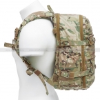 Внешняя сторона рюкзака содержит два плоских кармана на молнии для мелких вещей, таких как ключи, документы, перчатки или небольшое снаряжение. Также присутствуют ячейки MOLLE для крепления дополнительного снаряжения и боковой карман для бутылки воды или мотка веревки. Боковые съемные стяжки позволяют регулировать объем и закреплять куртку, каремат или другое схожее по размеру снаряжение.
