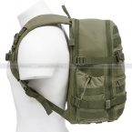 Внешняя сторона рюкзака содержит два плоских кармана на молнии для мелких вещей, таких как ключи, документы, перчатки или небольшое снаряжение. Также присутствуют ячейки MOLLE для крепления дополнительного снаряжения и боковой карман для бутылки воды или мотка веревки. Боковые съемные стяжки позволяют регулировать объем и закреплять куртку, каремат или другое схожее по размеру снаряжение.