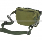 Длина поясного ремешка регулируется. При необходимости ремешок можно полностью отстегнуть и закрепить сумку под передним клапаном бронежилета на велкро-липучках. На задней стенке имеется отделение-карман с извлекаемыми стропами с велкро для этой цели.