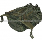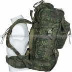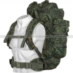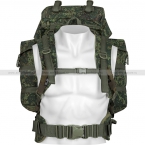 Спинка рюкзака снабжена мягкими анатомическими вставками. Широкие плечевые лямки с грудной перемычкой надежно пристрочены к корпусу. Средний слой лямок имеет наполнитель из упругой пенки. Кроме того, лямки снабжены системой быстрого сброса рюкзака, когда необходимо быстро избавиться от снаряжения в экстренной ситуации. Есть мягкий и широкий съемный пояс для фиксации рюкзака в области талии. Грудная перемычка и пояс надежно фиксируют рюкзак на теле при ходьбе или беге. Длина плечевых ремней и пояса быстро и удобно настраивается по фигуре.