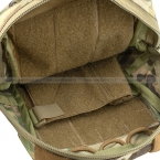 Внутреннее отделение практически полностью покрыто велкро, на которое можно закрепить подсумки, например, отрывные аптечки. Снизу, справа и слева, есть доступ к основному отделению на молниях.