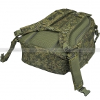 Для расширения тактического функционала на внешнем корпусе рюкзака нашиты стропы MOLLE, за счет которых можно крепить дополнительное снаряжение, например, подсумки. Незаполненный объем рюкзака можно стянуть стропами, расположенными по бокам.