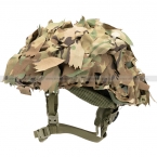 Камуфляжный чехол для шлема от компании Ars Arma, модель А-23 Лист. Изделие поставляется в виде набора, состоящего из основы с прорезями, креплений для установки чехла на шлем и маскировочных элементов, завязываемых на основе в произвольном порядке. Хаотичное расположение маскировочных элементов хорошо размывает силуэт.