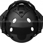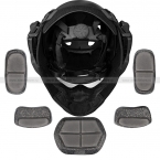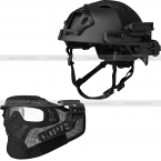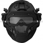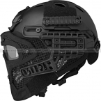 Страйкбольный шлем с интегрированной маской обеспечивает максимальную защиту головы. Купол шлема отлит из прочного пластика толщиной чуть более 3 мм. В области лба и затылка закреплен подвес, регулирующий внутренний объем под размер головы (за счет колесика сзади). Глубина посадки настраивается путем установки дополнительных "подушечек" (идут в комплекте).