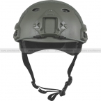 Страйкбольная реплика шлема Fast PJ, выполнена из ударопрочного пластика. Шлем снабжен рельсами по бокам для крепления дополнительного снаряжения, спереди имеется крепление для установки ПНВ. На внешней стороне каски наклеены велкро-панели для патчей и знаков различия. В верхней части на корпусе шлема расположены вентиляционные отверстия. Шлем прекрасно защищает голову от попадания страйкбольных шаров, рикошетов, легких ударов.
