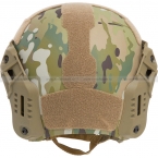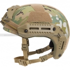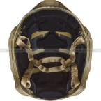 На внешней стороне шлема спереди есть пластиковый шрауд. В зонах над ушами идут пластиковые направляющие для крепления навесного оборудования. Велкро-панели служат для крепления чехлов и различного снаряжения.
