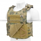 Жилет сшит из износостойкого нейлона Cordura плотностью 500D. Отделения для установки баллистической защиты есть в нагрудной и спинной панелях, а также в камербанде. Жилет совместим с большинством современных плит, включая SAPI и Гранит.
