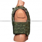 Широкие, мягкие плечи хорошо распределяют вес жилета. И на правом, и на левом плече есть вывод троса системы быстрого сброса. Сзади имеется эвакуационная петля. На груди располагается вместительный административный карман. Спереди и сзади есть велкро-панели для крепления патчей. На внутренней поверхности жилета также есть велкро для установки КАП.