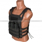 Облегченный, качественно пошитый бронежилет JPC в черном цвете. Главными преимуществами Plate Carrier JPC являются его вес (всего ~0,7 кг), большая мобильность (не стесняет движений, позволяет быстро перемещаться), оптимальная эргономика (абсолютно ничего лишнего). Бронежилет оснащен 3 интегрированными оружейными подсумками и 1 административным подсумком. В оружейные подсумки можно размещать магазины АК, М-серии, а также схожие по размерам.