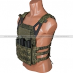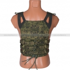 Облегченный бронежилет JPC в расцветке Цифра РФ (ЕМР). Изготовлен из оригинальной ткани с ИК-ремиссией российским производителем Ars Arma. Конструкция бронежилета даёт максимальную мобильность и тактический функционал. Plate carrier JPC снабжен 3 интегрированные боевыми подсумками (подходят для магазинов АК, М-серии или их аналогов по габаритам), а также 1 универсальным подсумком. Нашитые на корпусе стропы МОЛЛЕ дают возможность крепить большое количество необходимого дополнительного снаряжения.