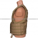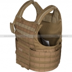 Вся внешняя поверхность бронежилета обшита стропами MOLLE, на которые в произвольной конфигурации можно навесить необходимое снаряжение: подсумки, кобуру, питьевую систему. Внутренняя поверхность жилета покрыта 3D-сеткой для вентиляции. Плечевые лямки снабжены съемными смягчающими накладками.