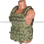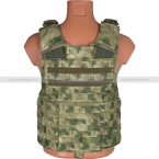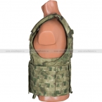 Полноразмерный бронежилет для профессиональных военных, представителей силовых структур и тех любителей страйкбола, кто ценит максимальную надежность. Жилет оптимальным образом сочетает в себе достоинства разгрузочной системы и защитные функции бронежилета. С одной стороны, вся поверхность жилета (за исключением плечевых лямок) покрыта стропами MOLLE, что делает возможным крепить на жилет большое количество подсумков и другого снаряжение в удобном порядке. С другой стороны, передняя и задняя панели имеют отсеки для установки бронепластин Гранит, SAPI / ESAPI и их аналогов (размер отделений 29х33 см), а камербанд (пояс) из 100% нейлона с жесткой каркасной вставкой хотя и не имеет отсеков для установки боковых бронепластин, но может потенциально защитить от осколков на излете и ударов по мягким тканям живота.