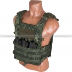 Облегченный модульный бронежилет от компании АНА. Конструкционно состоит из нагрудной и спинной панелей, пояса (камербанда) и съемных накладок (модулей). Передняя накладка оснащена 3 интегрированными оружейными подсумками и имеет 3 ряда MOLLE-строп. Задняя накладка имеет потайное отделение для установки питьевой системы, а на внешней стороне также нашиты MOLLE-стропы. Модульность (возможность снять при необходимости) накладок позволяет максимально снизить вес бронежилета, когда важна максимальная мобильности, при этом не жертвуя защитными характеристиками. Продуманная система крепления съемных накладок полностью исключает возможность их самопроизвольного отсоединения.
