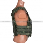 Внутри нагрудной и спинной панелей имеются отсеки для установки бронеплит. Размер отсеков 27х32 см. Нагрудная панель имеет 1 интегрированный административный подсумок для документов. Спереди и сзади жилета нашита велкро-липучка для крепления патчей и знаков различия. Шлевки по бокам жилета и плечевых лямок служат для организации трубки питьевой системы или проводов.