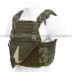 Плечевые лямки и камербанд пристегиваются к нагрудной панели застежками типа ROC, благодаря чему бронежилет можно быстро расстегнуть и сбросить с себя. На плечевых лямках есть мягкие накладки.