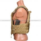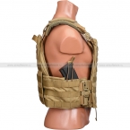 Бронежилет СБС (Сбрасываемая БронеСистема), модель TV-102 – это полноразмерный жилет с отсеками для установки бронепластин Гранит 2 размера (в комплект не входят). В камербанд (пояс) с специальные отсеки также можно установить боковые пластины. Вся внешняя поверхность грудной и спинной панелей, а также камербанда покрыта рядами ячеек PALS / MOLLE, что позволяет крепить на бронежилете необходимые дополнительные подсумки, кобуры и другое совместимое снаряжение.