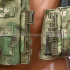 Съёмные мягкие накладки на плечевых лямках хорошо распределяют вес жилета, снижают нагрузку. На внутренней поверхности нашиты велкро-панели для крепления КАП (в комплект не входят).