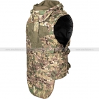 Спереди и сзади чехол покрыт рядами ячеек стандарта PALS / MOLLE, за счет чего может выполнять не только защитную функцию, но и выступать в качестве разгрузочного жилета: можно крепить совместимые подсумки, кобуру, питьевую систему и т.д. Диагональное расположение ячеек на груди служит для более удобного размещения кобуры и другого снаряжения.
