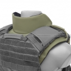 Составной модуль для противоосколочной защиты шеи и верхних частей груди и спины. Изделие состоит из двух частей: спинной и нагрудной. Внутрь каждой из частей можно установить баллистический пакет (баллистика в комплект поставки не входит). Горжет имеет продуманную эргономику, форма модуля обеспечивает круговую защиту шеи и верхней части торса.