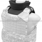 Модуль крепится к бронежилету с помощью широкой липучки, которая фиксируется на нагрудных и спинных панелях. В области плечевых лямок предусмотрены застежки на липучках и хлястики, позволяющие надежно закрепить модуль для большей стабильности.