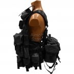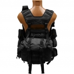Основой конструкции выступает жилет с нашитыми стропами MOLLE, позволяющими размещать на жилете как идущие в комплекте подсумки, так и доукомплектовать его любым иным МОЛЛЕ-совместимым снаряжением. Жилет застегивается на груди на 3 фастекс-застежки, по бокам и в районе плечей имеет регулировки по охвату и высоте, за счет чего настраивается от 46 до 60 размера. Широкие плечевые ремни со смягчающими вставками делают ношения жилета даже в полной боевой выкладке комфортным. Спинная панель жилета также имеет стропы МОЛЛЕ, на которые можно закрепить, например, питьевую систему. Валики на плечах удерживают оружейный ремень от соскальзывания.