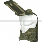 В верхней части бронежилета есть несъемный воротник, который можно расстегнуть при необходимости. На внутренней поверхности жилета нашиты велкро-панели ("ворс") для крепления КАП. Размер жилета можно настраивать по фигуре как в талии (по обхвату), так и в плечах (по высоте).