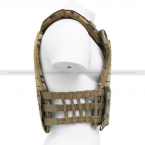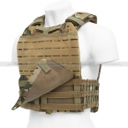 Внутри нагрудной и спинной панелей есть объемный карман для установки бронеплиты (габариты отделения около (Ш) 28 х (В) 35 см), что делает жилет совместимым с абсолютным большинством современных плит. Внутри отделений есть система крепления плиты, при помощи которой (в том числе) можно отрегулировать и высоту положения плиты в чехле. Отдельного отделения под мягкую баллистику нет.