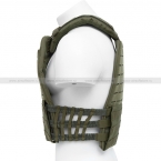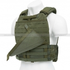 Внутри нагрудной и спинной панелей есть объемный карман для установки бронеплиты (габариты отделения около (Ш) 28 х (В) 35 см), что делает жилет совместимым с абсолютным большинством современных плит. Внутри отделений есть система крепления плиты, при помощи которой (в том числе) можно отрегулировать и высоту положения плиты в чехле. Отдельного отделения под мягкую баллистику нет.